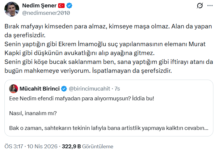 Nedim Şener ise şu paylaşımla yanıt verdi: