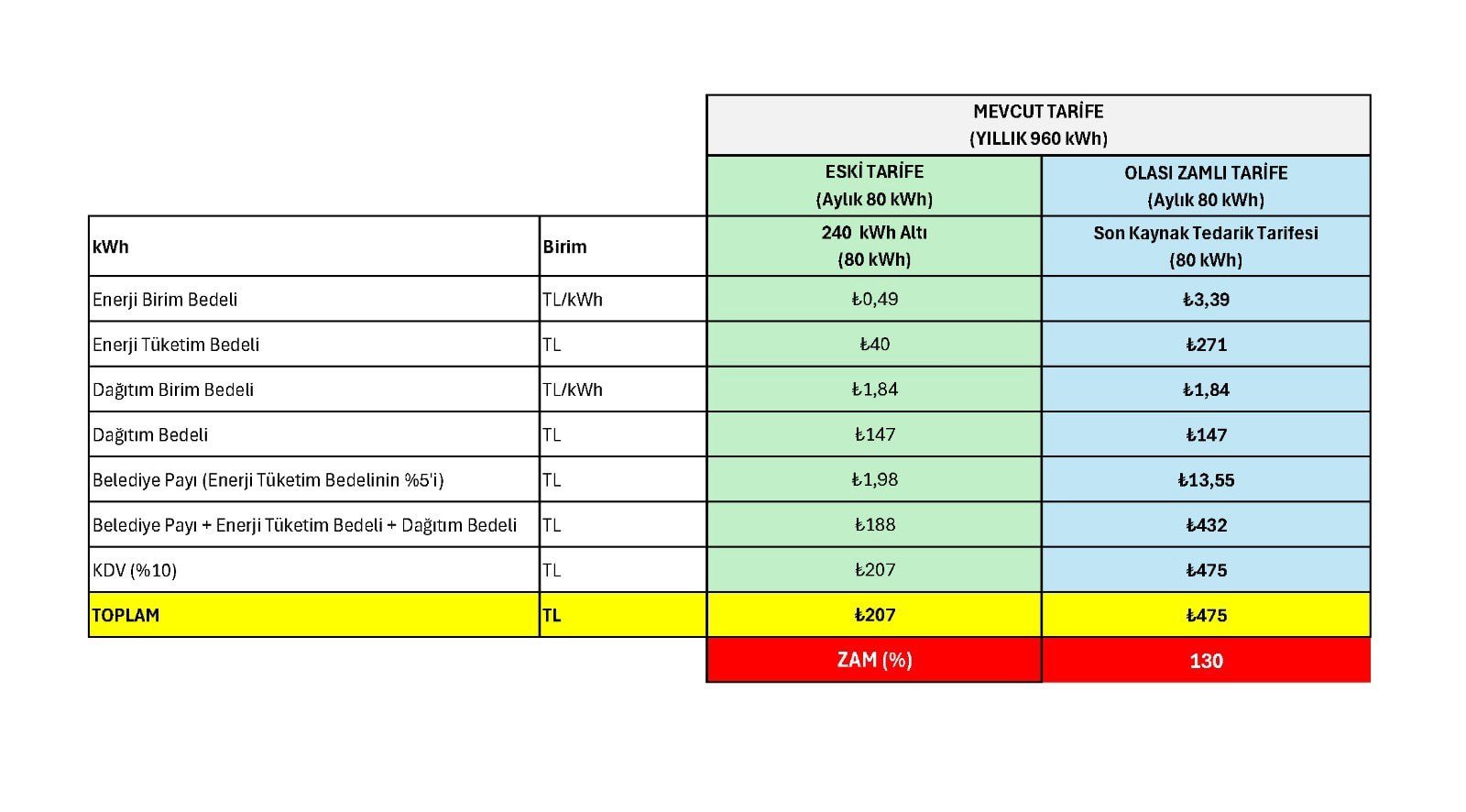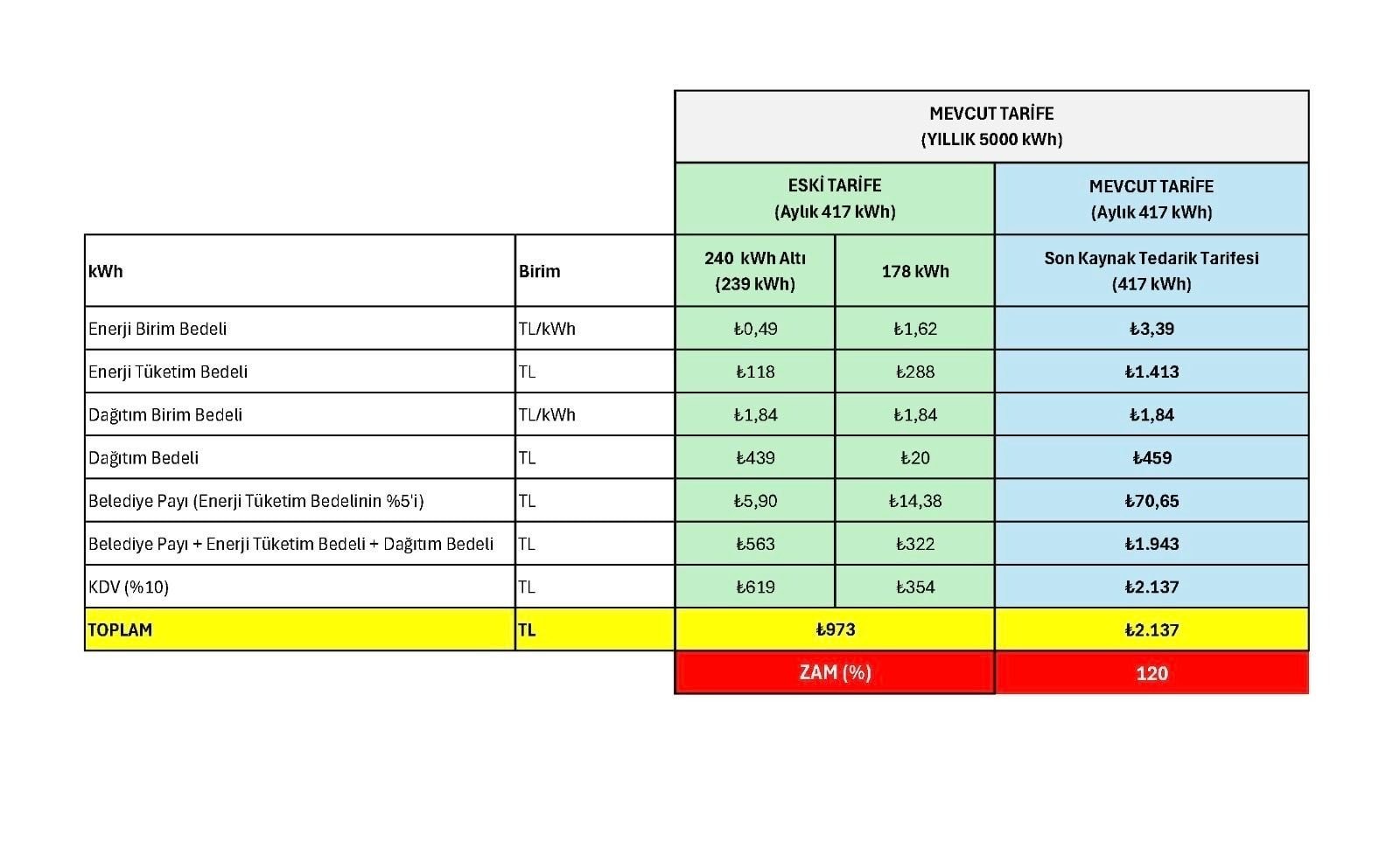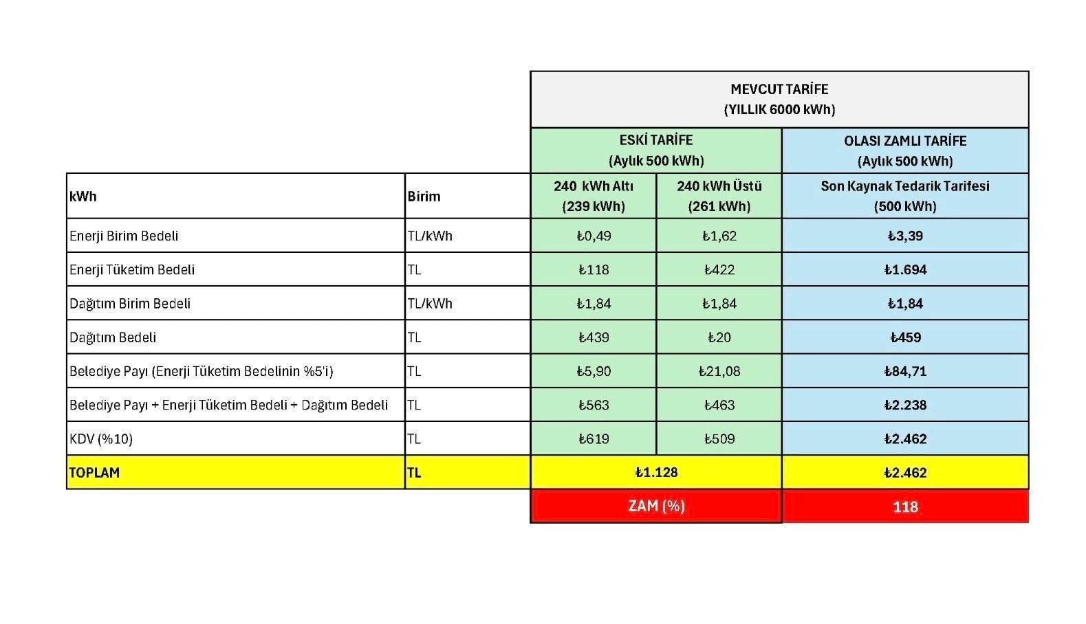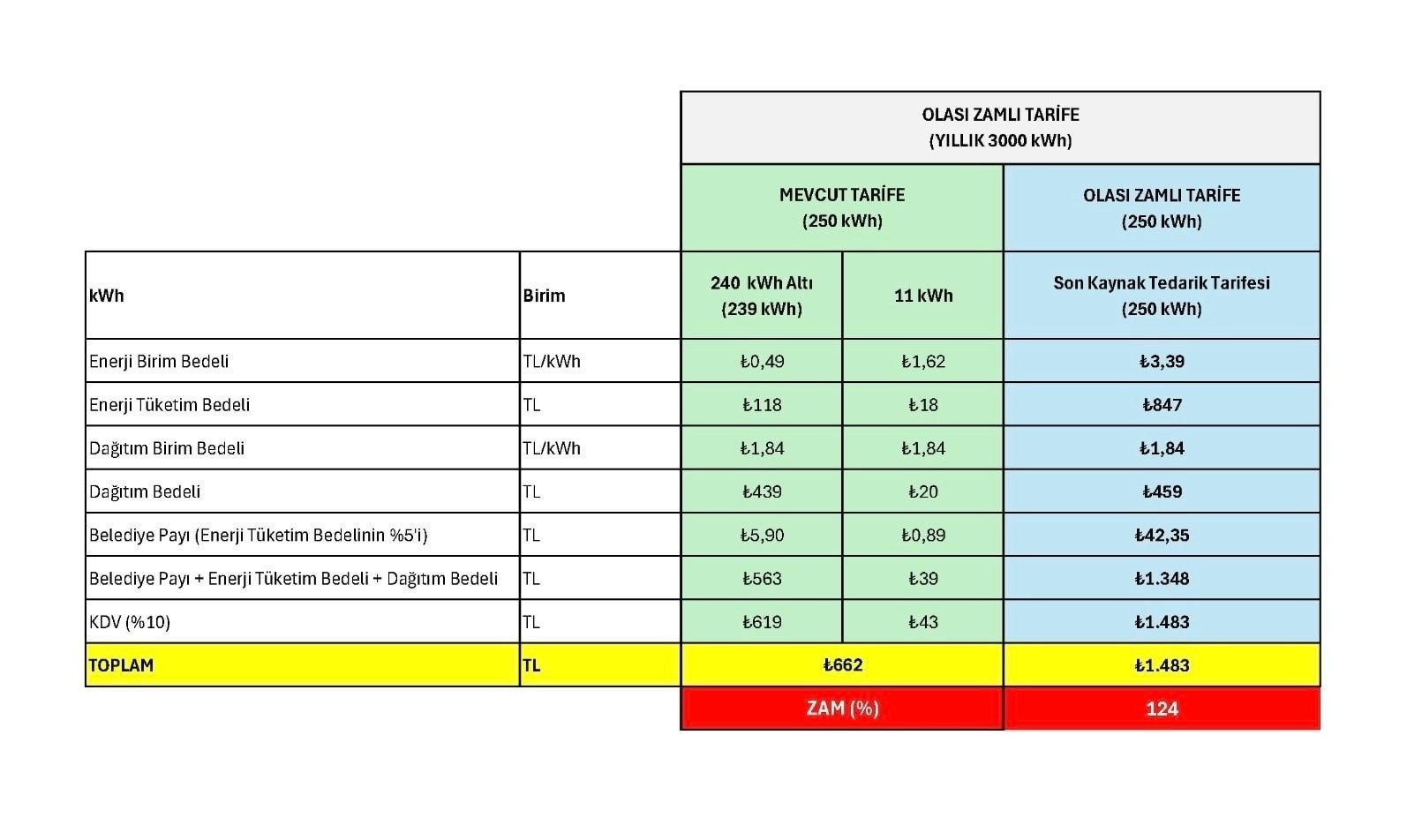Apartman aidatlarının içindeki ortak tüketimdeki elektrik faturasına yapılacak toplam zam oranı;