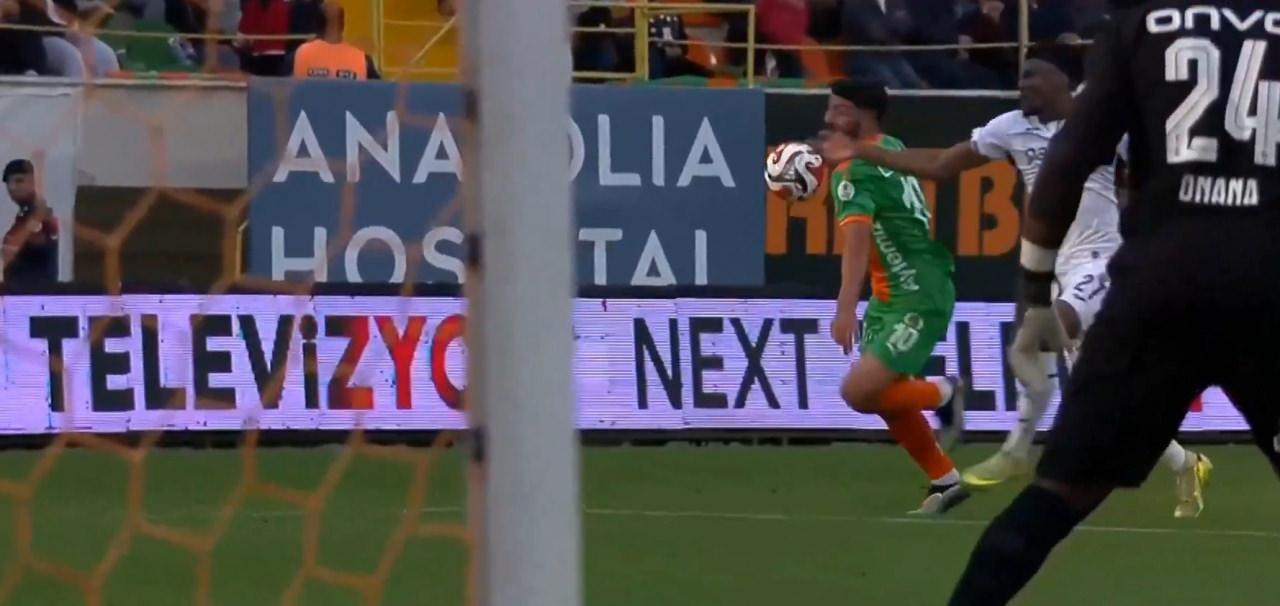Güven Yalçın karşılaşmanın 63. dakikasında sağ kanattan ceza sahasında girdiği esnada baskıya gelen Nwaiwu topa müdahale etti. Bu pozisyonda Alanyasporlu oyuncular penaltı itirazında bulundu.