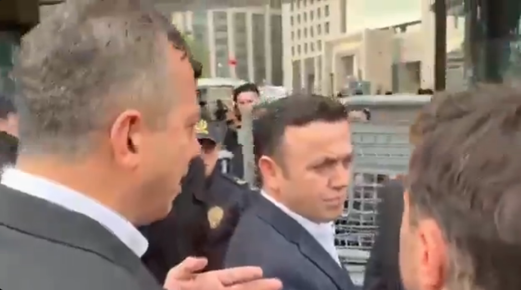 "Bugün Çağlayan'dayız. Görüyorsunuz, binlerce polis, panzerler. Niye? Yapılan yargılamayı insanlar takip etmesin diye. Türkiye bunu hak etmiyor. Bu ülke bunu hak etmiyor. Pazar günü bu ülkenin cumhurbaşkanı adayını, İstanbul'un belediye başkanını buraya getiriyorsun ve vatandaşları adliyeye, adliyenin çevresine almıyorsun. Olmaz. Bu olmaz. Bu ülkeye bu yakışmıyor. Yazık."