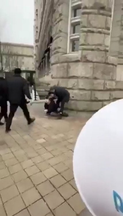 Bu sırada bazı protestocular ile koruma ekibi arasında kısa süreli itiş kakış yaşandı. Görüntülerde, bazı göstericilere fiziki müdahalede bulunulduğu görüldü.