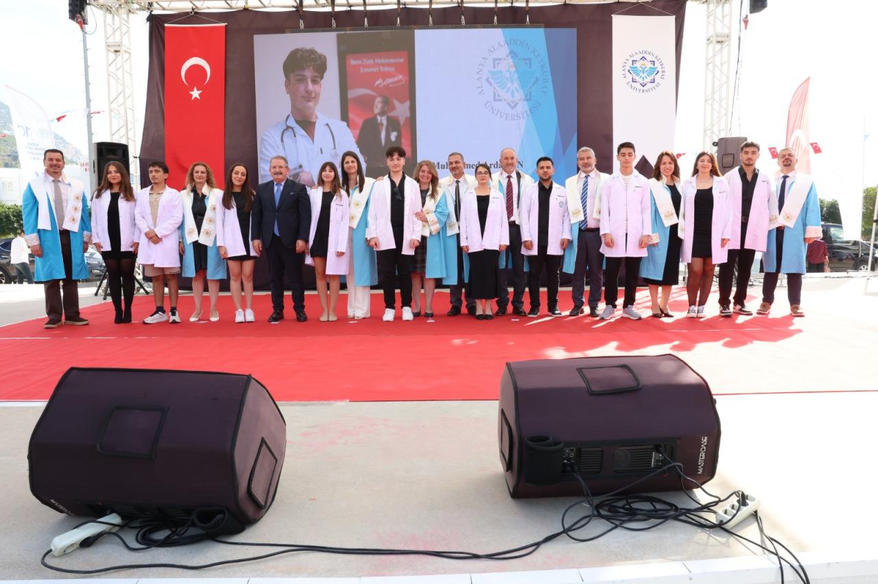 Kestel Amfitiyatro alanında yapılan törene, Antalya Vali Vekili Salih Yüce, Antalya Milletvekili Tuba Vural Çokal, ALKÜ Rektörü Prof. Dr. Kenan Ahmet Türkdoğan, Alanya Kaymakamı Şakir Öner Öztürk, Alanya Belediye Başkanı Osman Tarık Özçelik, İl Sağlık Müdürü Prof. Dr. Behçet Özkan, STK ve siyasi parti temsilcileri, kurum ve kuruluş başkanları, hayırseverler, Alanya protokolü, akademik, idari personel, öğrenciler, aileleri ve vatandaşlar katıldı.