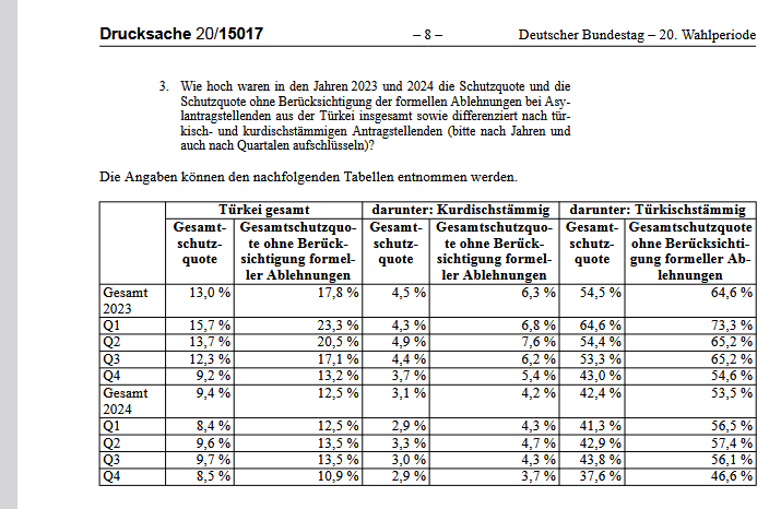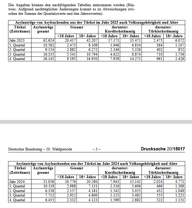 KAÇIP GELEN KÜRT ÇOK AMA...BAMF’tan soru yönelten milletvekillerine verilen cevap oldukça ayrıntılı. Bu cevap, Türkiye üzeri gelen diğer ülke vatandaşlarının iadesinin dışında, Türkiye Cumhuriyeti vatandaşı olan ve Almanya’ya gelip iltica isteyen, Türk ya da Kürt kökenli olduğunu beyan ederek ilticaya başvuranları kapsıyor.