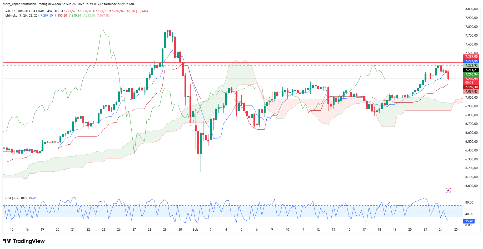 Gram altın, ons altında görülen kayıpların etkisiyle, aşağı yönlü eğilimler sergiliyor. Gram altın sabah seansına 7 bin 399 liradan başlayan gram altı bugün akşam seansında 16.58'de 7 bin 219 liraya gerileyerek 188 lira kayıp verdi.