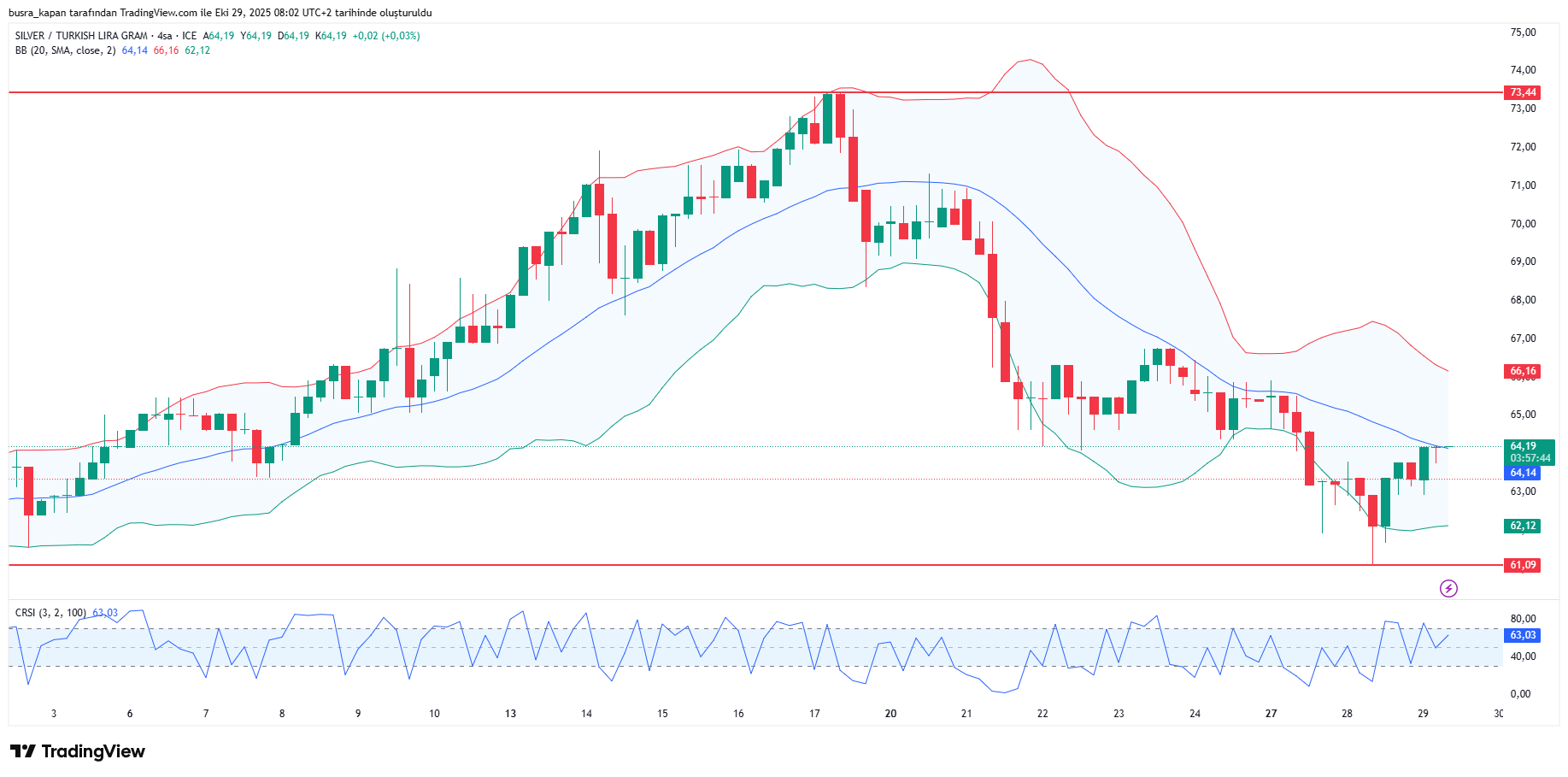 Gram gümüş, rekorlar sonrası kazançlarını silerek aşağı yönlü eğilim sergiliyor. Dün ise dolar/TL kurundaki yatay seyir ve ons gümüşteki yükselişlerin etkisiyle yeniden yukarı yönlü bir hareketlilik yaşıyor. Sabah seansında 08.46'da 64,19 seviyesinde bulunuyor.