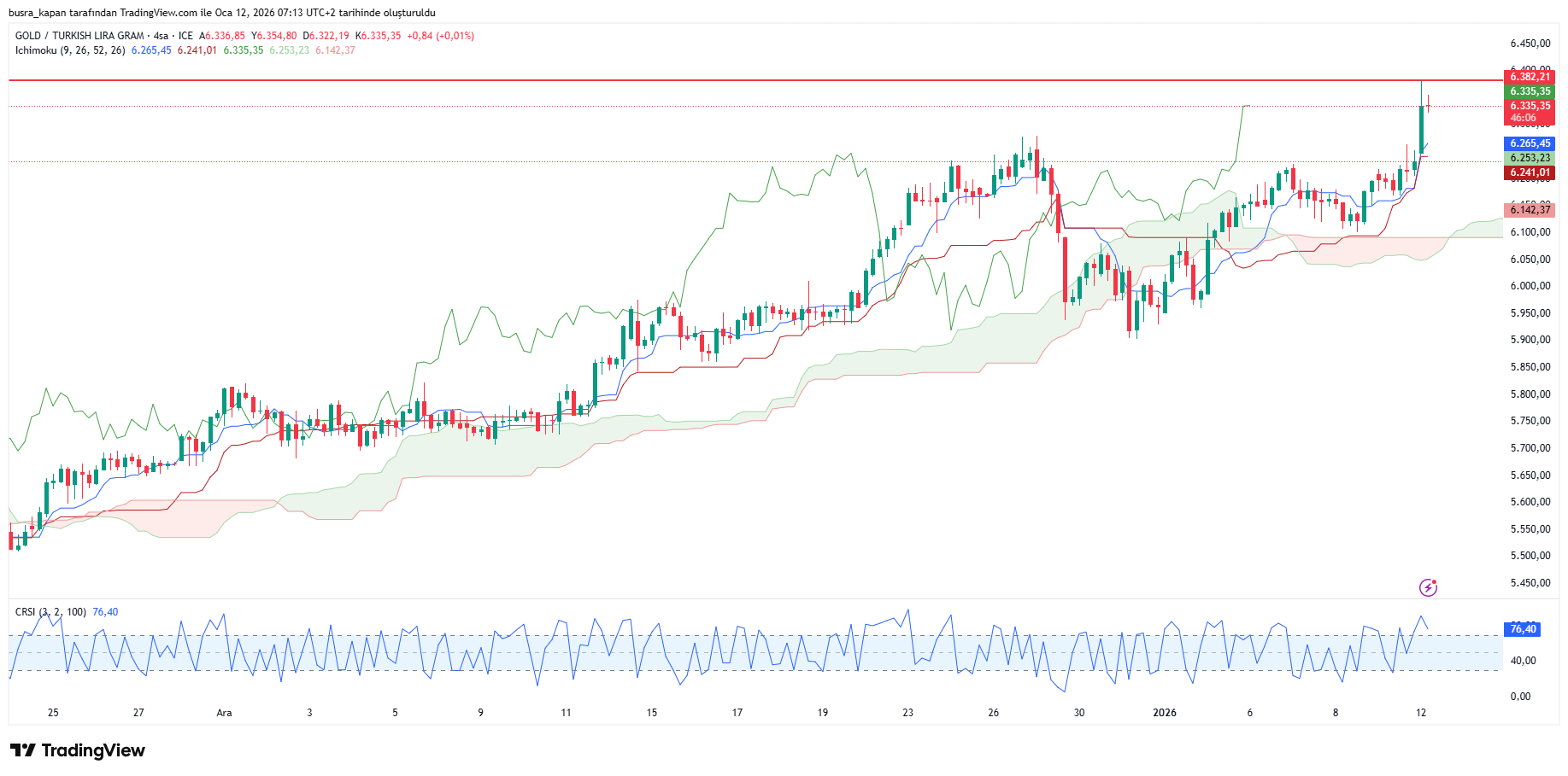 Ons altın tarafında yaşanan yükseliş ve dolar/TL kurundaki yükselişin etkisiyle, gram altın rekor tazeledi. Gram altın fiyatları yeni günde sabah seansında 07.59'da 6 bin 338 lirada bulunuyor.