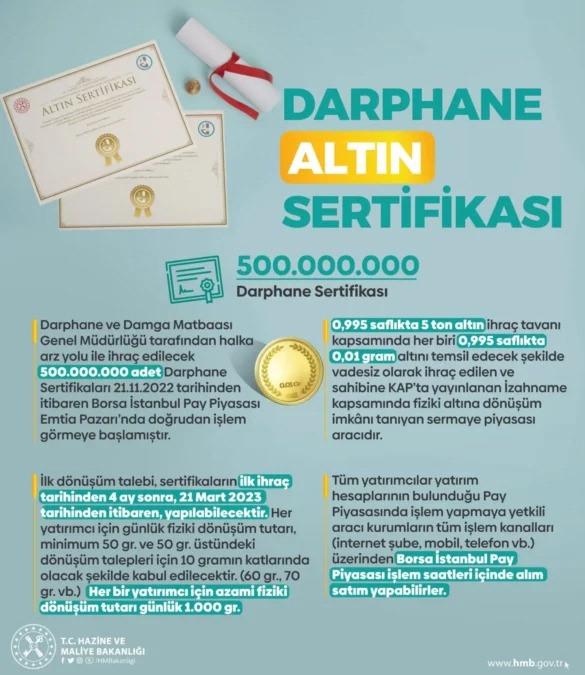 Darphane altın sertifikası, günlükte yüzde 4,75'lik yükselişle 85,73 lira seviyesine kadar çıktı. Son iki işlem gününde yaşanan yükseliş yüzde 15'e yaklaşırken, gram altın ile olan fark yüzde 33 seviyelerine çıktı.