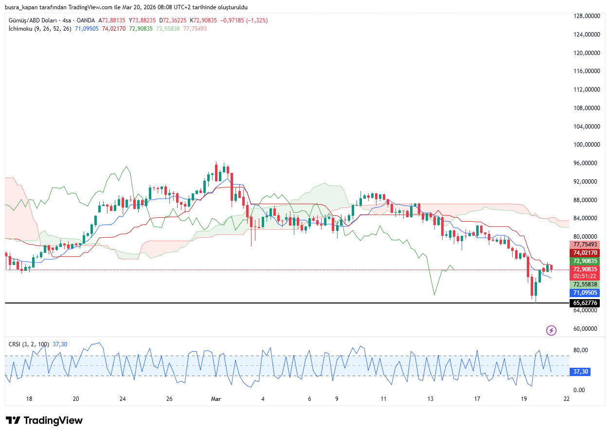 Gümüş fiyatları dünden bu yana yatırımcınsın kabusu oldu. Ons gümüş dün 70 doların altına sarkarak 65,62 dolara geriledi. Ons gümüş bugün sabah seansında 08.49'da 73,03 dolarda bulunuyor.