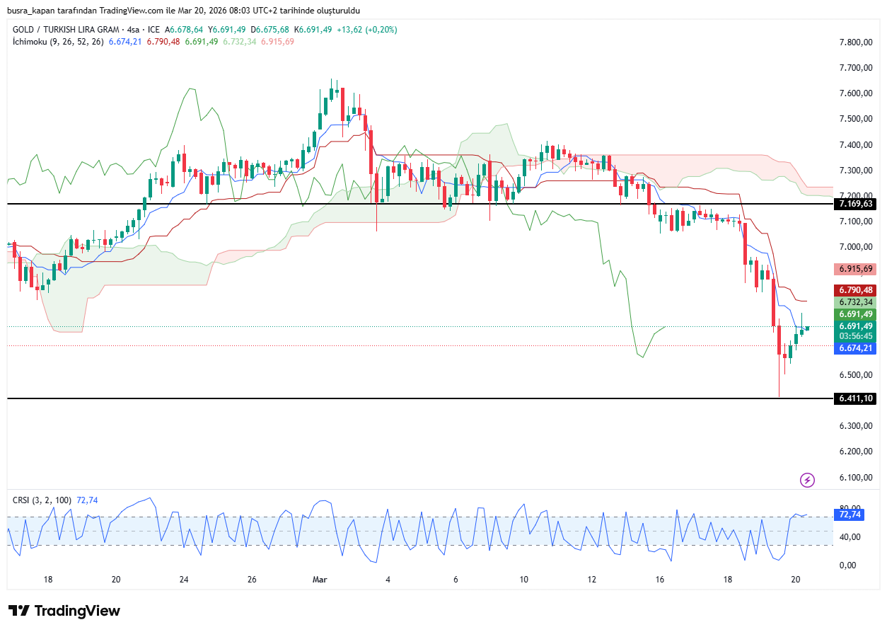 Gram altın dün ons altındaki sert düşüşün ardından 6 bin 411 liraya kadar sert düştü. Bugün sabah seansında 08.49'da 6 bin 695 lirada bulunuyor.
