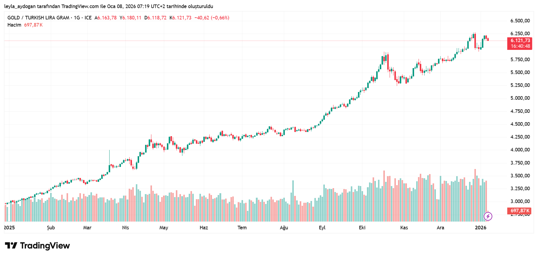 Gram altın yeni güne 6.121 TL’den başladı, ons altın 4.428 dolar civarında işlem görüyor. Dün gram altın 6.224 TL ile günün zirvesini test ettikten sonra gelen kar realizasyonlarıyla geri çekildi.