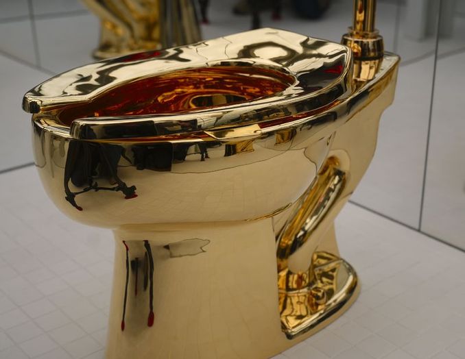 İlk altın klozetin 2016-2017 yıllarında Guggenheim Müzesi'nde sergilendiği süre boyunca 100 binden fazla kişi tarafından kullanıldığı, ardından Blenheim Sarayı'na taşındığı belirtildi.