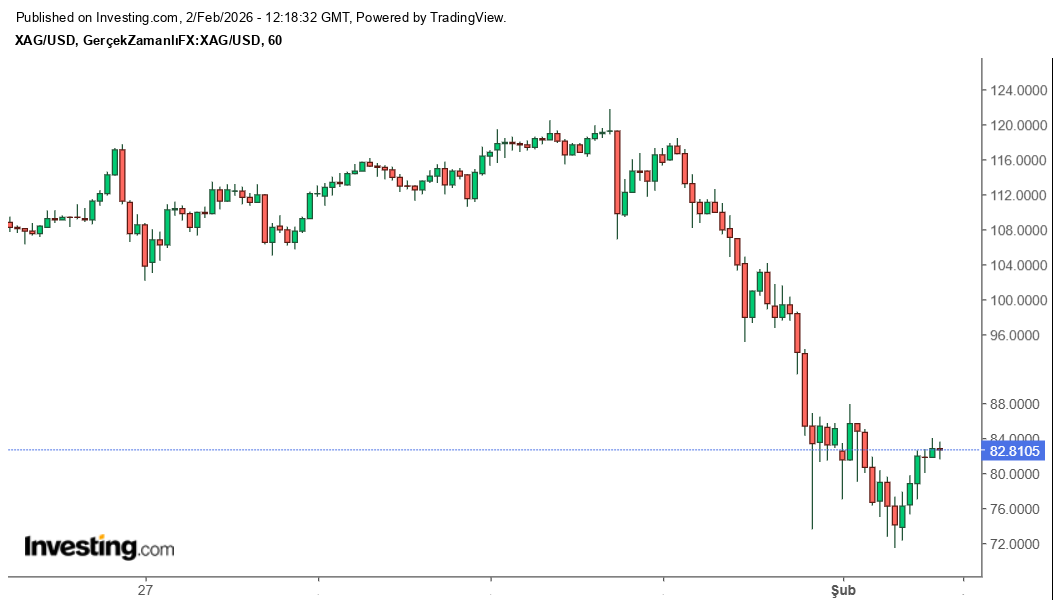 Gümüşte sert düşüşlerine ara verdi. Ons gümüş, perşembe günü 121,65 dolara yükselerek tüm zamanların rekorunu kırdıktan sonra sert düşüşler yaşadı. Ons gümüş 71,17 dolara geriledi. Ons altın Perşembeden bu yana 50 dolar kaybetti. Ons gümüş bugün 13.55 itibarıyla kayıplarını dizginleyerek yeniden 88,81 dolara yükseldi.