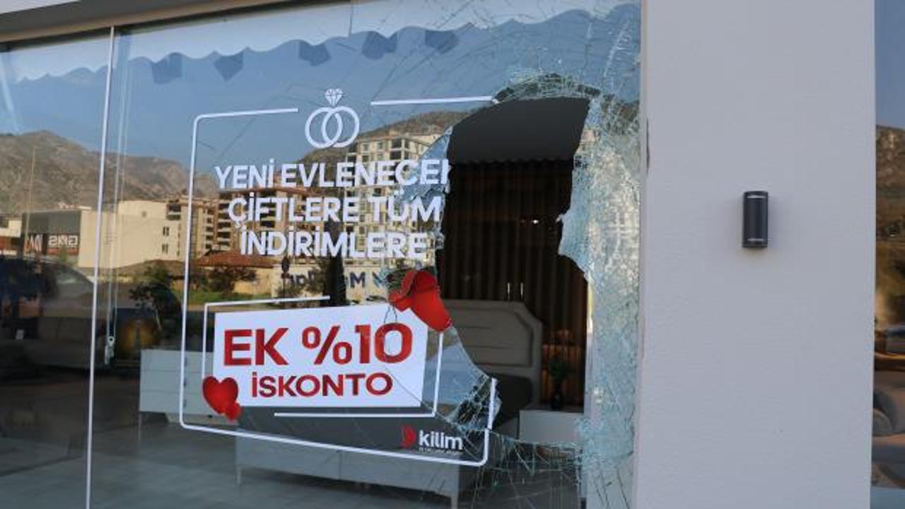 Tekerleğin yolda yuvarlanarak gelişi ve mağazanın camından içeri girdiği anlar, iş yerinin güvenlik kamerasıyla görüntülendi.