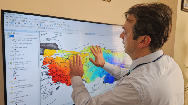 Bizim yaptığımız analizlerde bu gerinim hattı üzerinde bazı bölgelerde irili ufaklı geçmişten bugüne depremler olduğu görünüyor. Ama bu jeolojik süreci biraz daha uzattığımızda milyonlarca yıl sonra buradaki gerinim nedeniyle Türkiye'nin doğusuyla batısının bu zıt yönlü hareket nedeniyle ileride ayrışacağı ve birbirinden uzaklaşacağı, birbirinden kopacağı öngörüsü yapmak mümkün bu hareket devam ettiği takdirde.
