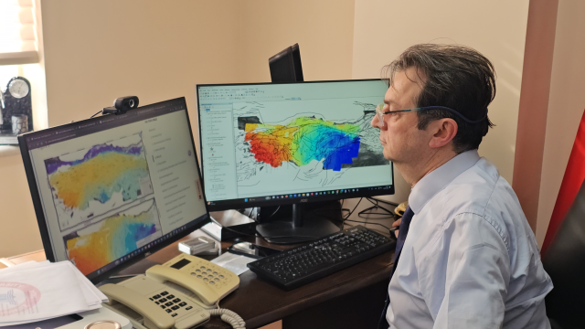 "Analizlerimizi derinleştirdiğimizde şunu gördük; Ankara'nın doğusunda kalan kısmı, kuzeye doğru hareket ederken, Ankara'nın batısı güneye doğru hareket ediyor. Bunun neticesinde de 0 hattı dediğimiz, haritada beyazla gösterilen bir geçiş kuşağı oluşuyor. Bu geçiş kuşağı aynı zamanda bir gerinim hattı.