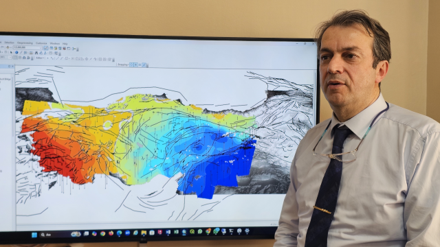 "Bu hat üzerindeki sismik olayları incelediğimizde küçük boyutlarda, 3, 4 büyüklüklerinde depremlerin zaman içerisinde meydana geldiğini görüyoruz. Ama bu enerji birikimi milyonlarca yıl içerisinde birikerek çok daha uzun hatların kırılması gündeme gelebilir. Hatta Anadolu'nun bu gerinim devam ettiği takdirde milyonlarca yıl sonra ortadan ikiye ayrılması da söz konusu olabilir. Yakın zamanda büyük bir deprem tehlikesi yok ama jeolojik süreç içerisinde bunlar meydana gelebilir. Çünkü orta bölgede, beyaz hat üzerinde yılda birkaç milimetrelik hızlarda gerinim birikimleri söz konusu."