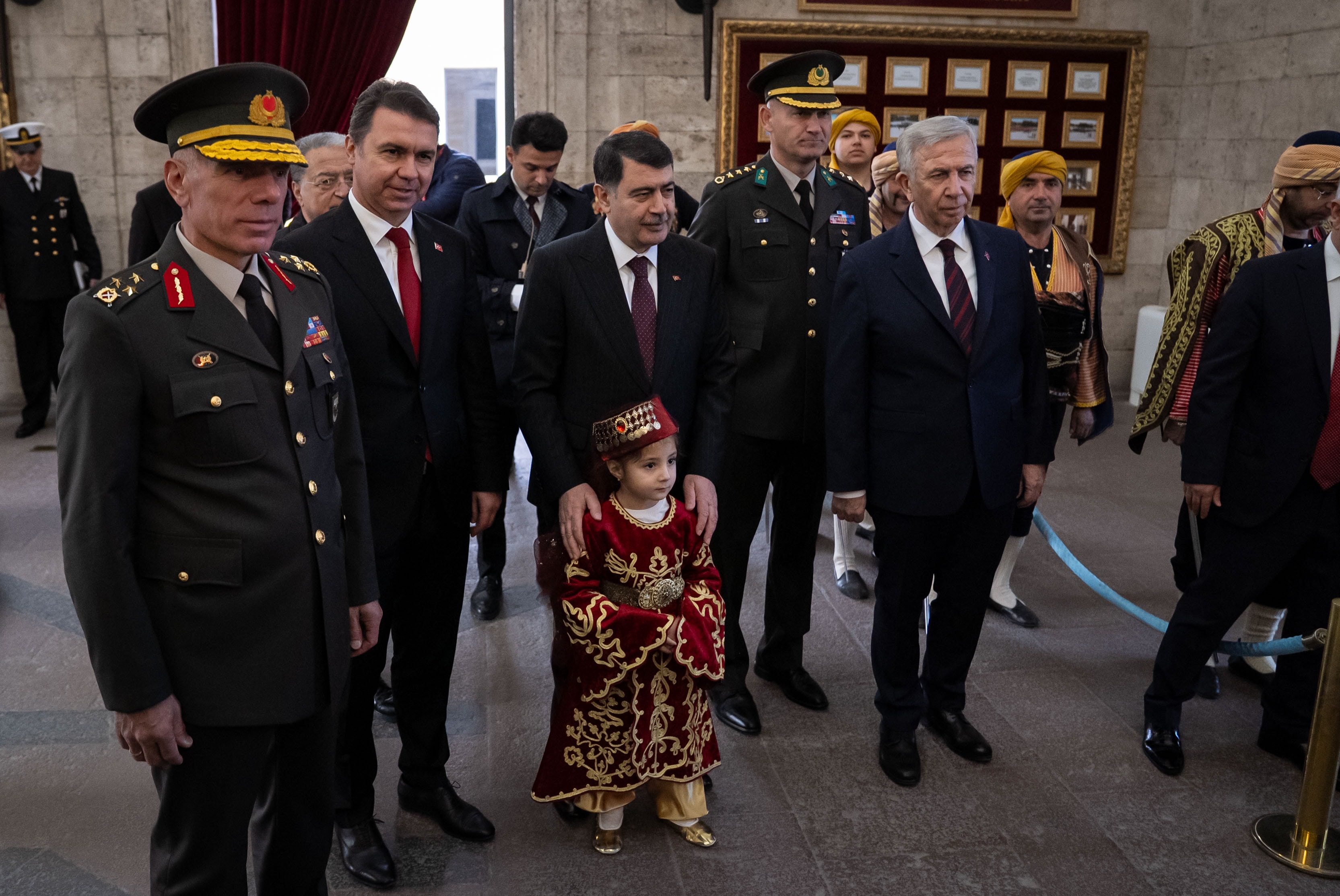 ABB Başkanı Mansur Yavaş, Ankara Valisi Vasip Şahin ve Ankara Cumhuriyet Başsavcısı Gökhan Karaköse ile birlikte Anıtkabir’de düzenlenen törene katıldı.