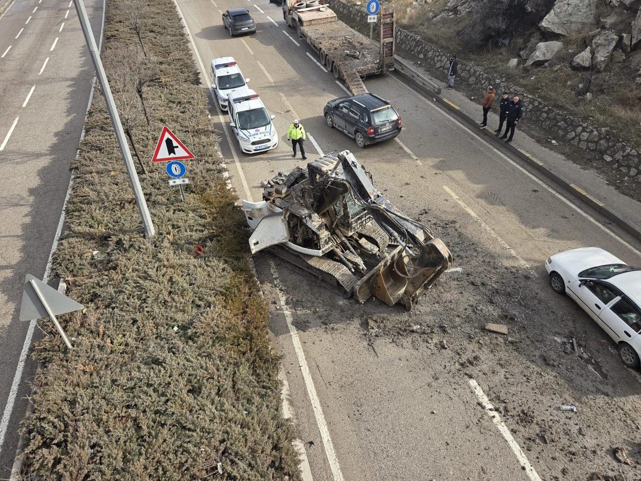 Çarpmanın etkisiyle kepçe yol ortasına düştü. O sırada arkadan gelen araçlar, ani fren yaparak kazadan kıl payı kurtuldu. Herhangi bir can kaybı ya da yaralanmanın yaşanmadığı kazada trafik kısa süreli aksadı.