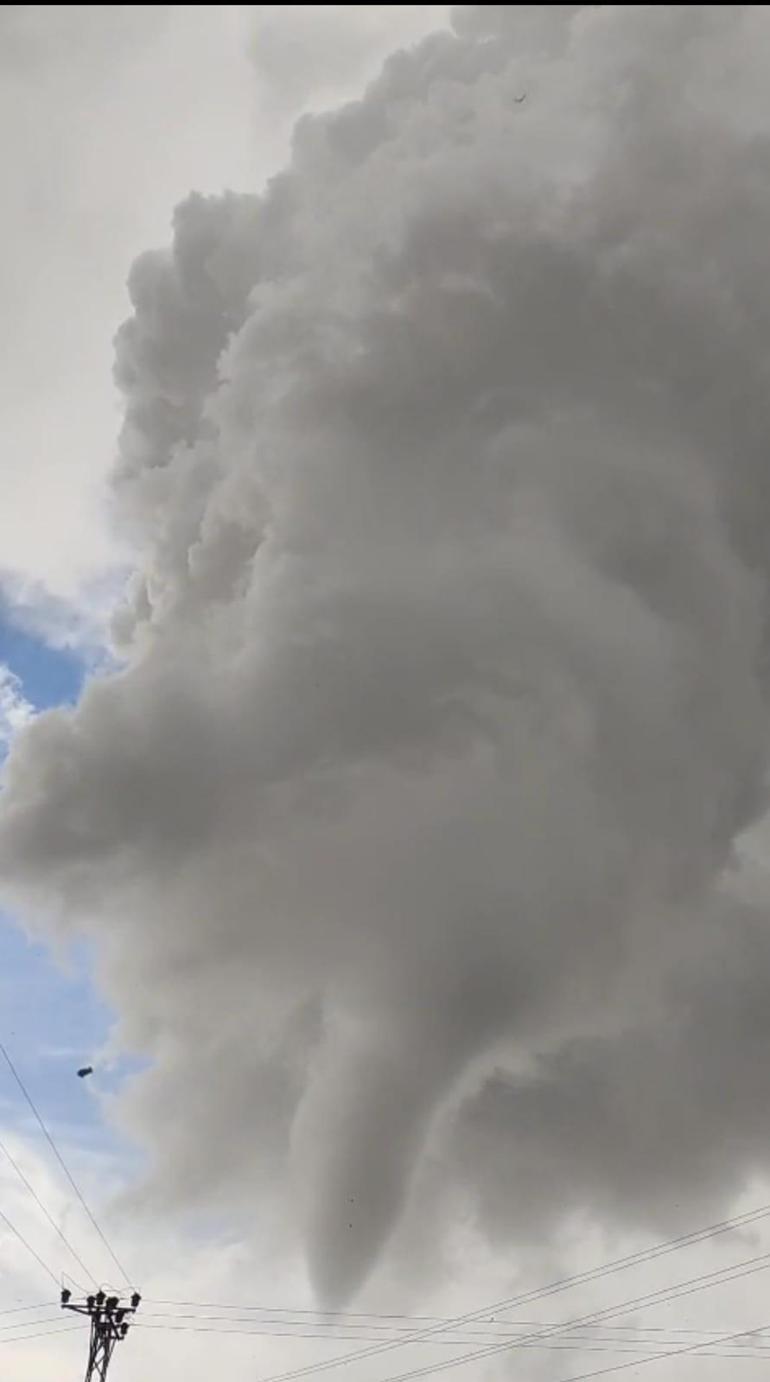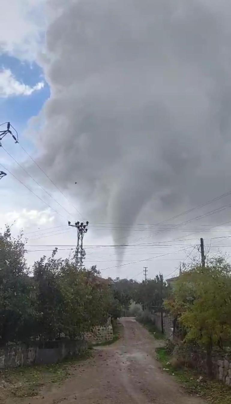 Ayaş ilçesinin İlhanköy Mahallesi'nde yaşanan şiddetli rüzgar ve fırtınanın aniden ortaya çıktığını belirten vatandaşlar, gökyüzünde beliren hortumu da cep telefonuyla kaydetti.