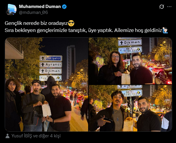 AKP “AKIM”I FIRSATA ÇEVİRDİTabelanın önünde oluşan kalabalığı fırsat bilen AKP Çankaya İlçe Gençlik Kolları ise, gençlerle “tanışma” bahanesiyle siyasi faaliyette bulundu. İlçe Gençlik Kolları Başkanı Muhammed Duman, sosyal medya hesabından yaptığı paylaşımda, “Gençlik nerede biz oradayız. Sıra bekleyen gençlerimizle tanıştık, üye yaptık. Ailemize hoş geldiniz” ifadeleriyle fotoğraflar paylaştı.