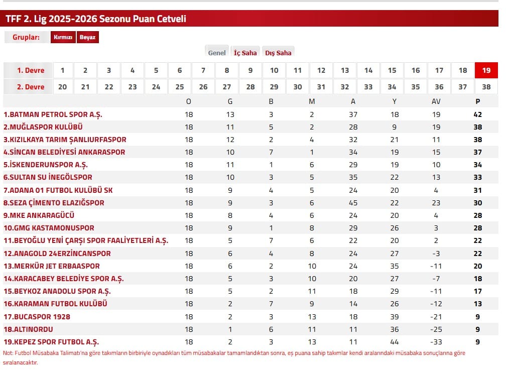 24 Erzincanspor ise 22 puanla 12. sırada bulunuyor.