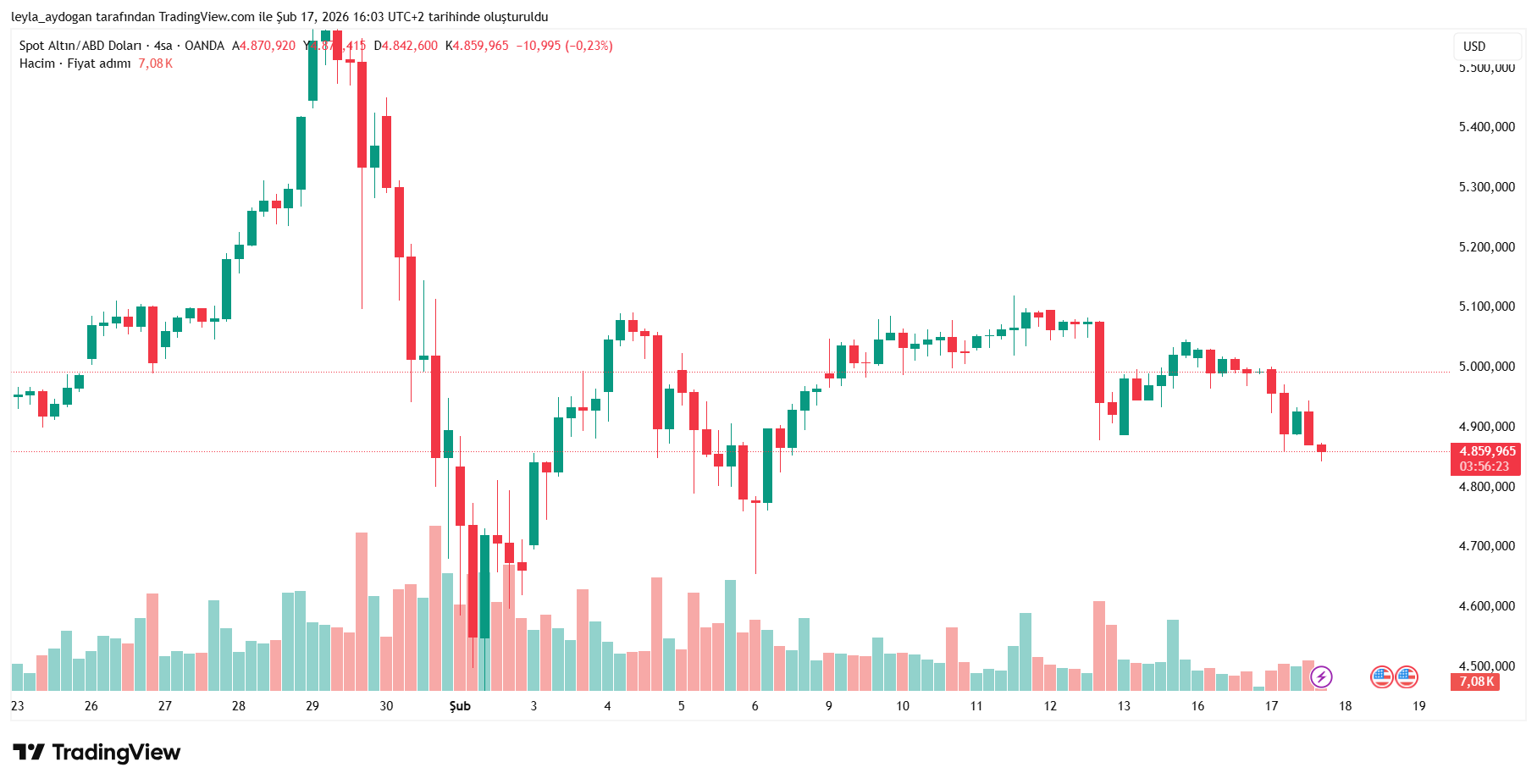Ons altın görüşme öncesinde 4 bin 918 dolarda bulunuyordu. Görüşmelerin ardından 4 bin 842 dolara kadar gerileyerek şu anda 4 bin 897 dolarda hareketleniyor.