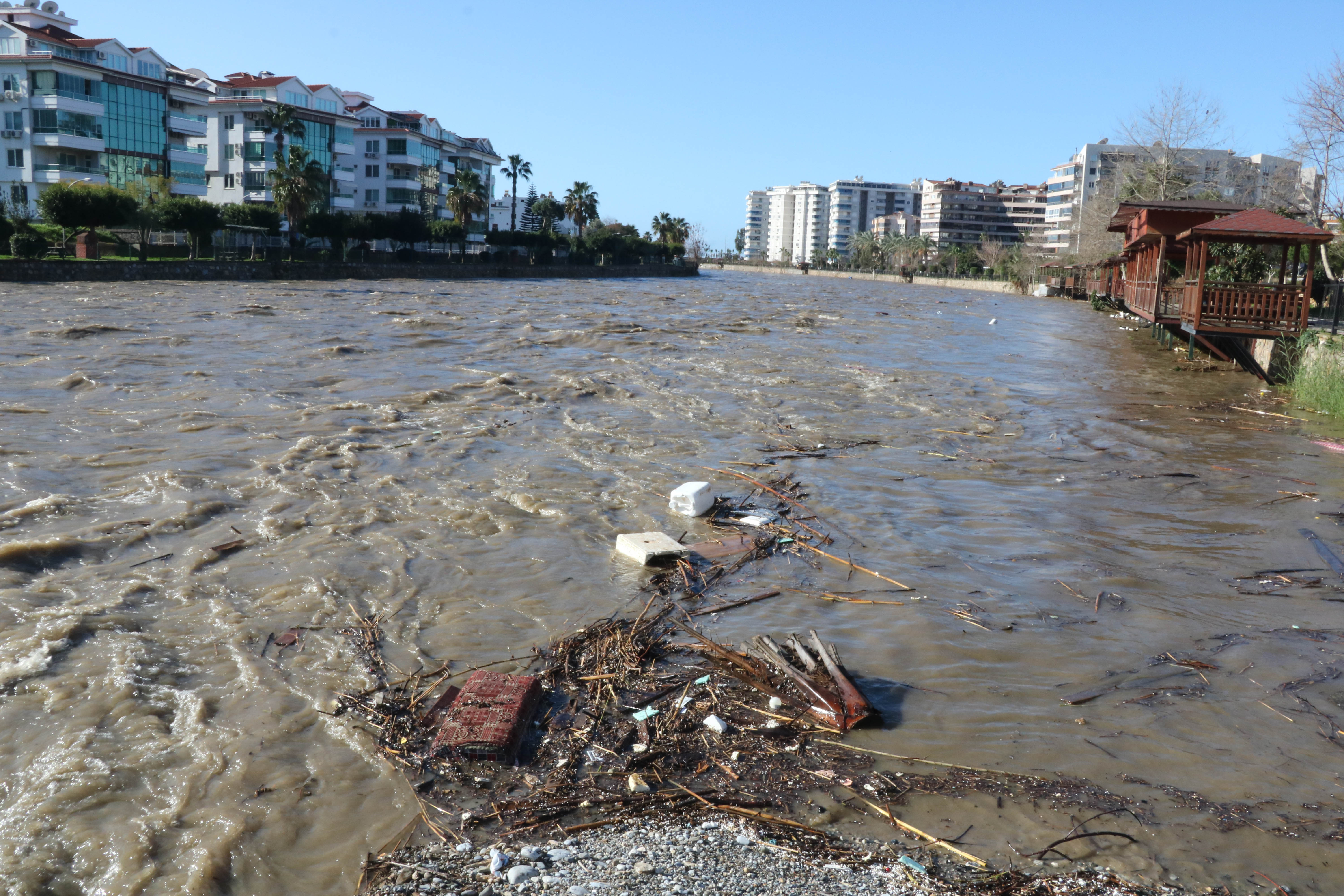 BİRÇOK İLÇEDE HASARSerik’te Köprü Çayı Irmağı’nın yükselmesiyle Belkıs ve Sarıabalı’da restoranlar, piknik alanları ve bahçeler su altında kaldı. Manavgat’ta ırmak çevresindeki yürüyüş yolları ve banklar sulara gömüldü, Manavgat Şelalesi görünmez hâle geldi.
