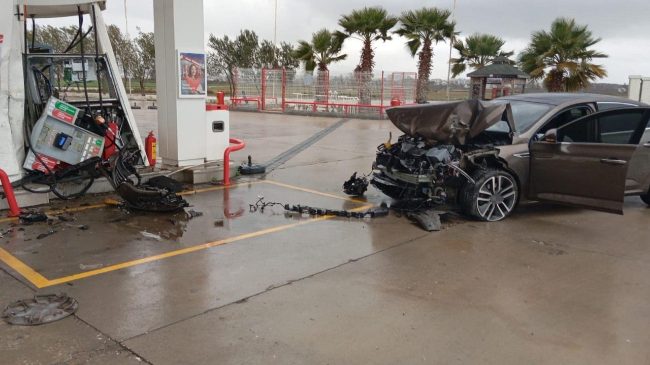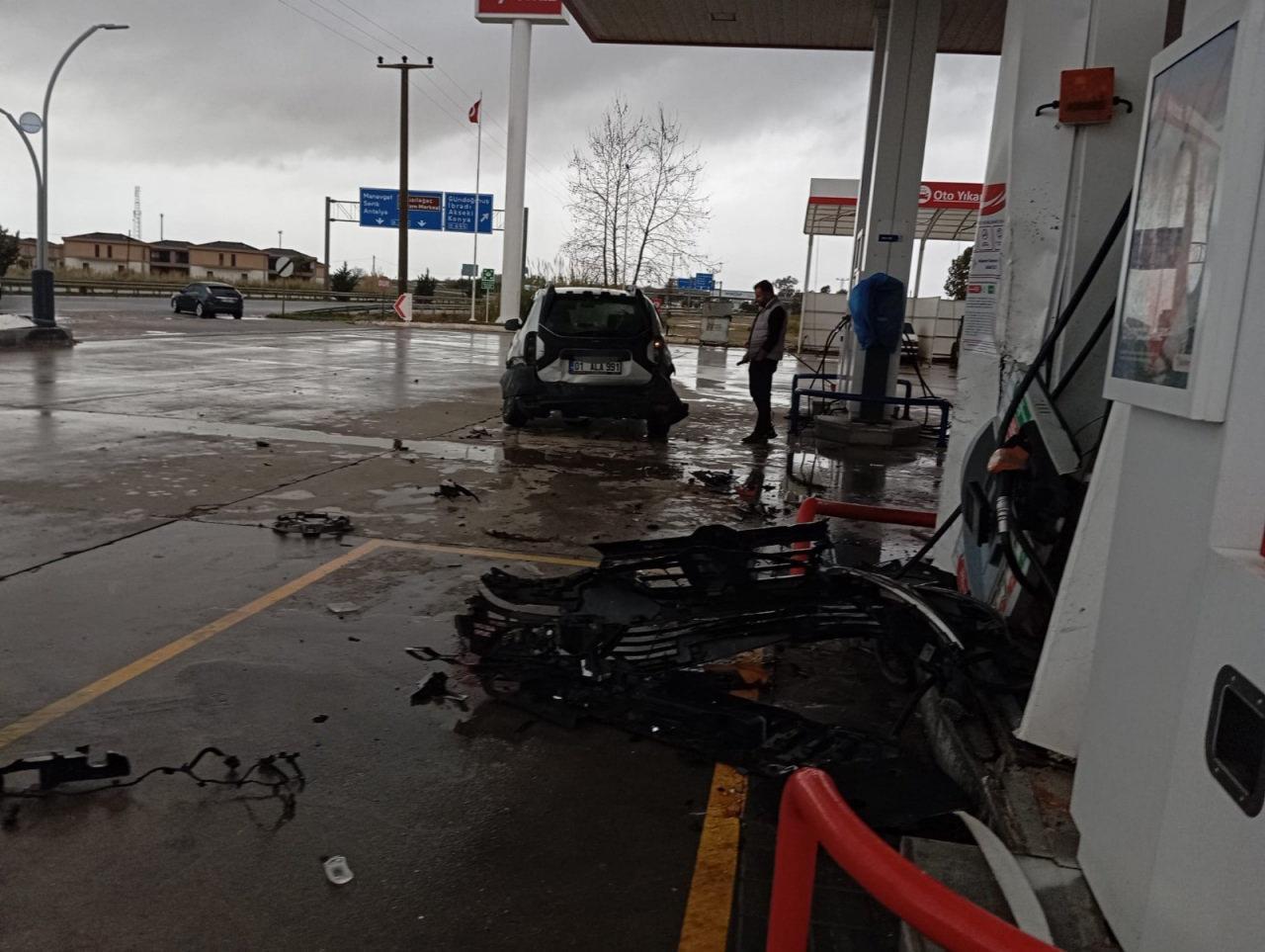 Otomobil o sırada istasyonda yakıt alan Erdal Uluhan'ın kullandığı 01 ALA 991 plakalı otomobile arkadan çarptıktan sonra akaryakıt pompasını devirdi.