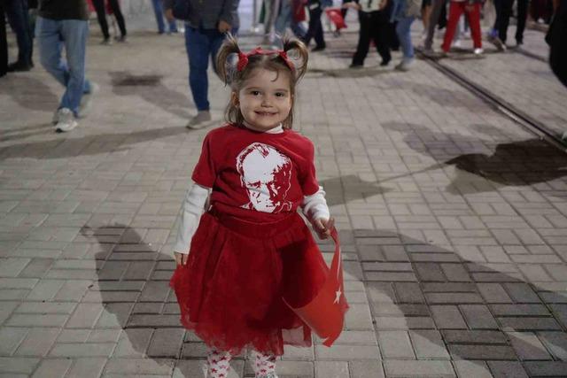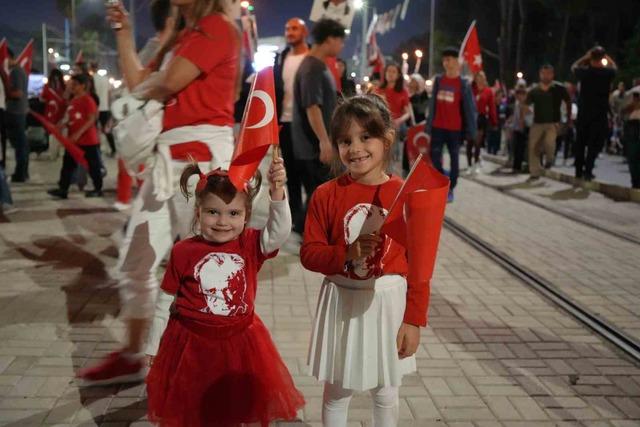 Öğrenci Andı ve Atatürk’ün Gençliğe Hitabesi hep birlikte okundu; kıyı şeridi boyunca balkonları dolduran vatandaşlar da alkışlarıyla bu anlara eşlik etti. 7’den 70’e her yaştan Antalyalı, sloganlar ve marşlar eşliğinde Cumhuriyet’in 102. yılının coşkusunu yaşadı. Meşalelerin aydınlattığı kortej, kilometrelerce yürüyüşün ardından Cumhuriyet Meydanı’na ulaştı.