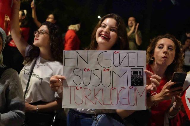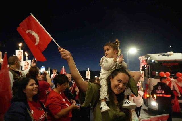 Konyaaltı Varyant’ta toplanan kalabalık yürüyüş güzergahını doldurdu. Antalya Valisi Hulusi Şahin, Büyükşehir Belediye Başkan Vekili Büşra Dirgen Özdemir, sivil toplum kuruluşlarının temsilcileri ve yüzlerce vatandaşın katıldığı yürüyüşte 400 metrelik dev Türk bayrağı taşındı.
