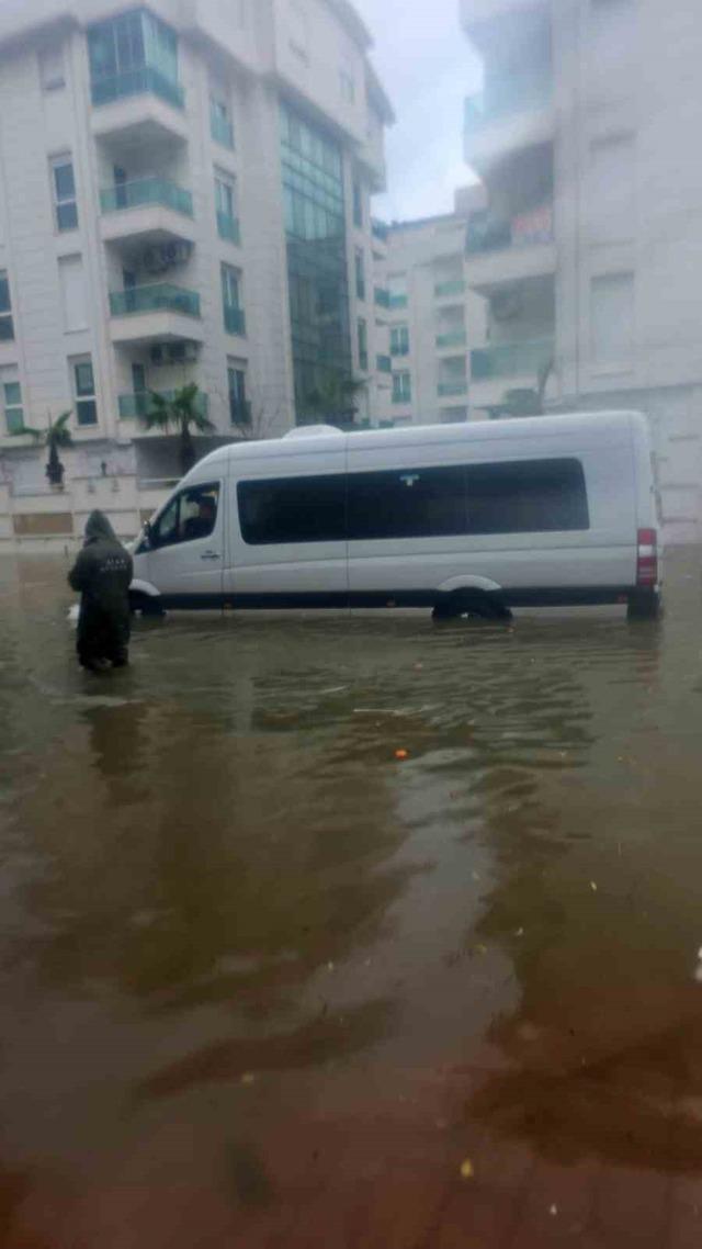 Meteoroloji Bölge Müdürlüğü’nün Antalya ve ilçelerinde şiddetli yağış ve fırtına beklendiği yönündeki uyarısının arından gece saatlerinde başlayan yağmur hayatı olumsuz etkiledi. 7 ilçede okullar tatil edilirken. su basan yollarda çok sayıda araç yolda kaldı. Araçlarında mahsur kalan vatandaşları AFAD ve Antalya Büyükşehir Belediyesi İtfaiye Daire Bakanlığı’na bağlı ekipler kurtardı. Liman Mahallesinde su dolu yolda bir servis aracı mahsur kaldı. Servis aracının içerisindeki sürücü ve vatandaşlar belediye ekipleri tarafından araç kasasına alınarak tahliye edildi.