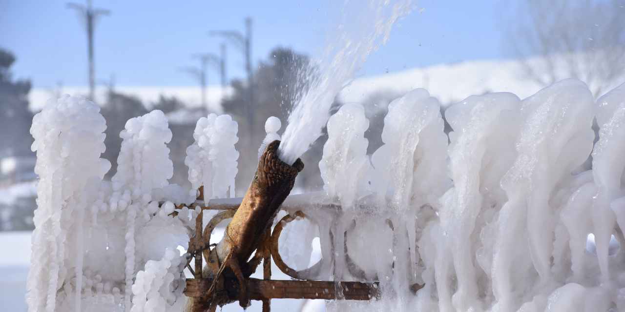 Travertenlere su ulaştırmak amacı ile uzatılan borulardan gelen 45 derecelik sıcak suyun, soğuk havalardan dolayı anlık olarak donma seviyesine indiği görüldü.