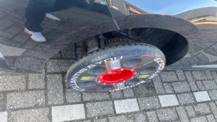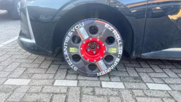 Söz konusu fotoğraflarda gösterilen tekerlekler EZ Roller-Spinner olarak adlandırılır ve dar alanlarda araçların hareket ettirilmesi için özel ekipmandır. Esasen, normal tekerleklerin kullanımının mümkün olmadığı durumlarda araçların taşınmasını kolaylaştırmak için tasarlanmış yardımcı manevra tekerlekleridir .