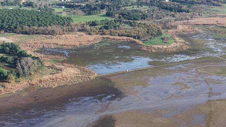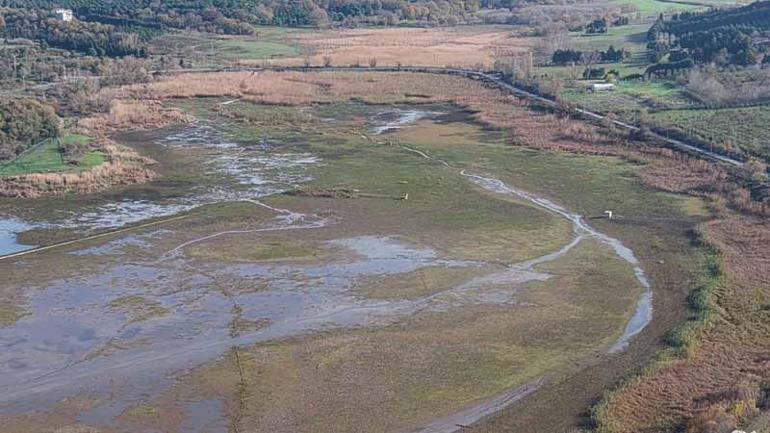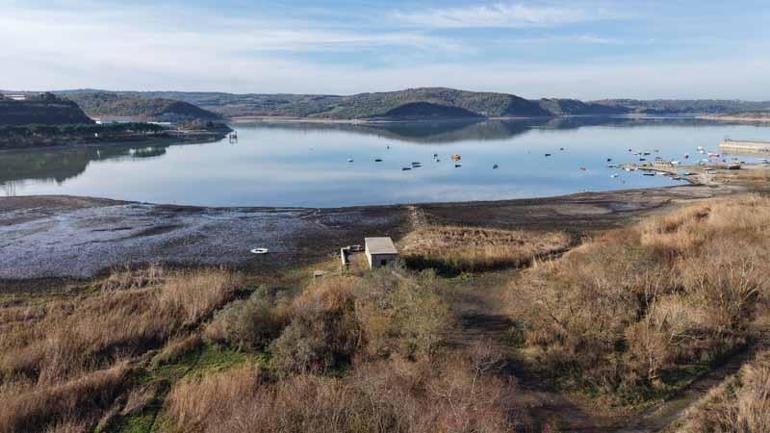 İstanbul’un en büyük barajlarından biri olan Terkos Baraj Gölü’nde de doluluk oranı yüzde 19.01’e kadar geriledi. Baraj havzasında daha önce suyla kaplı olan alanların kuruduğu, bazı teknelerin ise demir attıkları noktada sudan onlarca metre uzakta, balçık çamur içinde kaldığı görüldü. Bölgedeki son durum havadan görüntülendi.