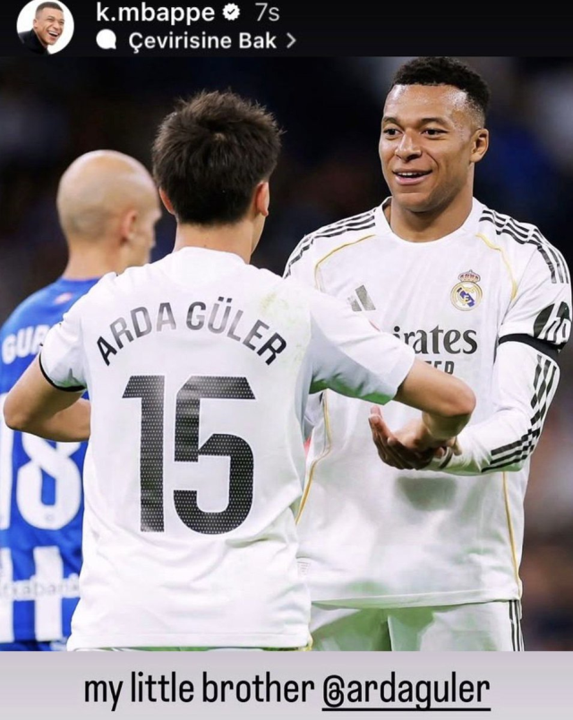 Maçın ardından Fransız yıldız, Arda Güler ile olan bağını sosyal medya üzerinden tüm dünyaya ilan etti. Arda ile birlikte gol sevinci yaşadığı bir kareyi paylaşan Mbappe, fotoğrafa "Benim küçük kardeşim" notunu düştü. Ayrıca milli yıldızın kendisiyle ilgili yaptığı bir paylaşımı da kendi hikayesine ekleyerek aralarındaki buzların eridiğini, aksine çok yakın olduklarını kanıtladı.