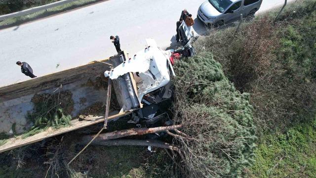 Arnavutköy de hafriyat kamyonu çayırlık alana uçtu, ağaçlar devrildi!