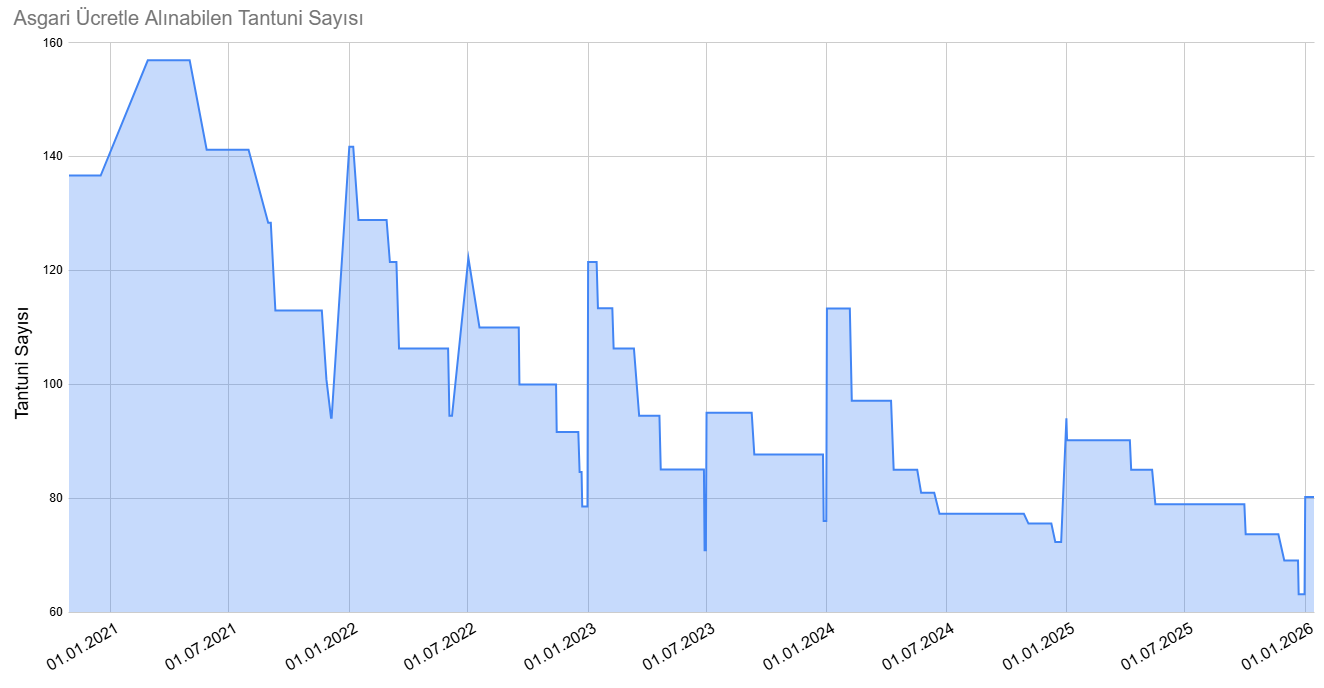 İktidarın 1 Ocak itibarıyla net 28 bin 75 lira olarak belirlediği yeni asgari ücret de kaybolan alım gücünü telafi etmekten çok uzak. Ergin’in hesaplamalarına göre, tantuni fiyatı sabit kalsa bile yeni maaşla alınabilen ürün sayısı ancak 80’e çıkabiliyor. Bu rakam ise yıl başları kıyaslandığında son 5 yılın en düşük başlangıç seviyesi olarak kayıtlara geçiyor. Yani "zamlı" maaş bile halkın sofrasını 5 yıl öncesinin gerisinde bırakıyor.