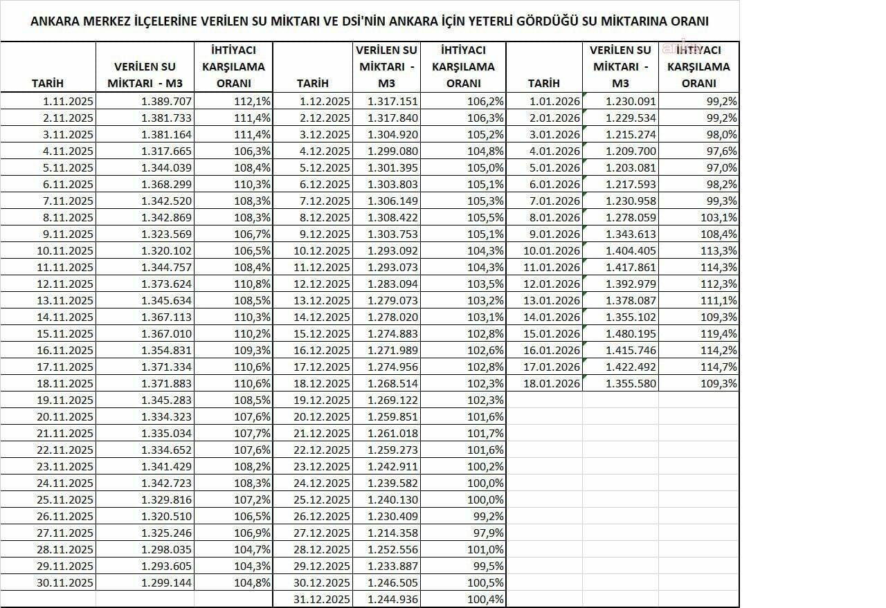 "YÜZDE 98 ORANINDA SU TEMİNİ SAĞLANDI"Son 2,5 aylık süreçte şehre verilen su miktarlarının incelendiği belirtilen açıklamada, kesinti uygulanan tarihlerde dahi Ankara genelinde ortalama yüzde 98 oranında su temininin sağlandığının görüleceği ifade edildi.