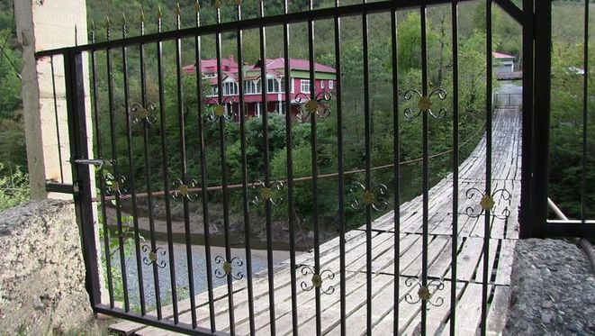 Güner, demir kapılara kilit vurarak paslanmaması için üzerine çatı da monte etti. Derenin karşı yamacında Güner ailesine ait 6 eve ulaşımı sağlayan asma köprü demir kapılı ve çatılı görünümüyle dikkat çekiyor.