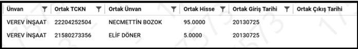 2013'te Ticaret Sicil Gazetesi'ne yapılan bildirimle Necati Bozok'un şirketin yüzde 95 hisseli ortağı olduğu, yüzde 5'inin Elif Döner'e bırakıldığı belirtildi.