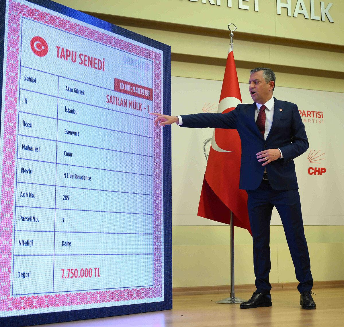 Özel aynı toplantıda, Akın Gürlek'in İstanbul'daki bir daireyi 118 milyon TL'ye aldığını belirtti.
