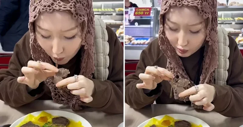 At eti yiyen kadın o anları kayda alıp paylaştı: İlk lokmada...