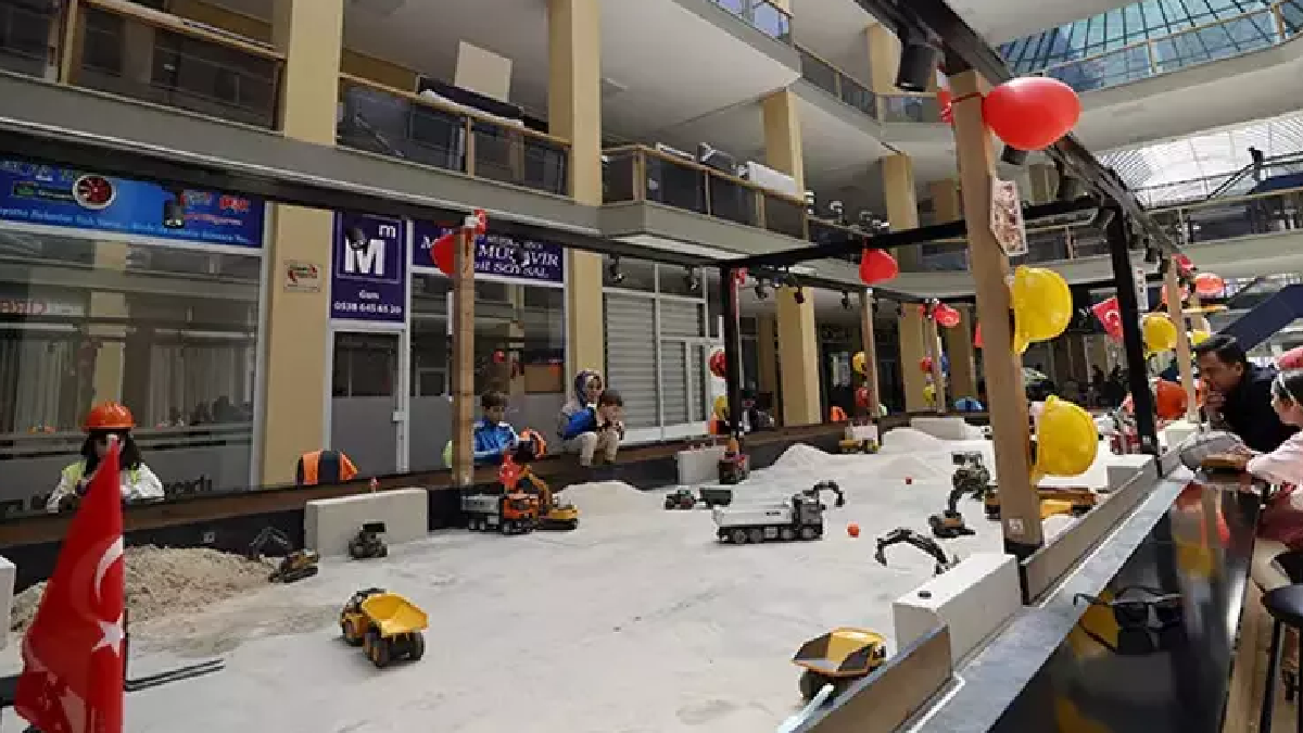 Malatya’nın Battalgazi ilçesinde bir iş merkezinin zemin katında kurulan mini şantiye alanı, çocuklar ve yetişkinler için sıra dışı bir eğlence ve deneyim noktası haline geldi. Kum havuzları, minyatür kepçeler, yükleyiciler ve farklı görev istasyonlarından oluşan alanda ziyaretçiler, gerçek bir şantiye ortamını andıran düzen içinde çeşitli aktiviteler gerçekleştiriyor.