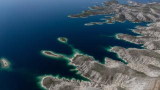 Havadan görüntülenen bölgede, açık renkli toprak yapısı, turkuaz tonlarındaki su ve yeşil örtünün oluşturduğu manzara, yer yer "Maldivler"i andırıyor.