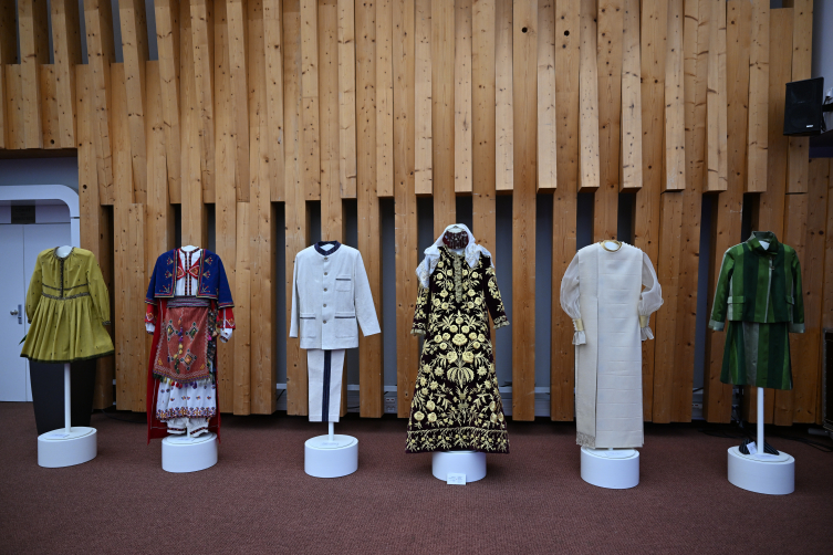 Sergide, mekik gibi geleneksel üretim yöntemlerinde kullanılan eşyalar tanıtılırken, ehram ve Ankara Sof Kumaşı dahil geleneksel kumaşlarla tasarlanan elbiseler de sergilendi.