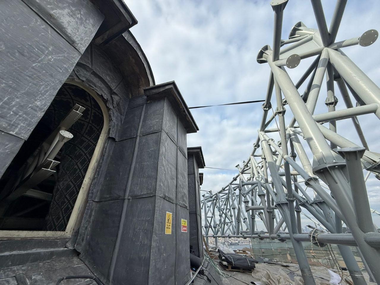 Kültür ve Turizm Bakanlığı'ndan yapılan açıklamaya göre; Ayasofya-i Kebir Camisi'nde yürütülen restorasyon çalışmaları kapsamında, Koruma Bölge Kurulu kararlarıyla onaylanan projeler doğrultusunda geçici çelik çatı imalatları sürüyor. Yapım süreci devam eden iç mekan çelik platformu ile kubbe üzerindeki geçici çelik üst örtü, kubbe pencerelerinden geçecek çelik kirişler vasıtasıyla birbirine bağlanacak. Bu bağlantı için Koruma Bölge Kurulu kararı ile kubbelerde bulunan ve özgün olmadığı tespit edilen mermer pencerelerin itinalı söküm işlemlerine başlandı.