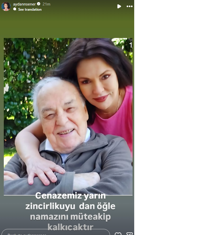Aydan Şener, babasının ne zaman son yolculuğuna uğurlanacağını da sosyal medya hesabından duyurdu.