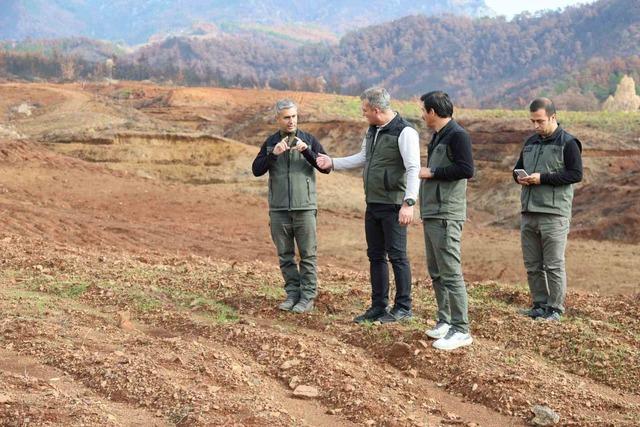 Muğla Orman Bölge Müdürü Mustafa Ülküdür, Köyceğiz’de yapılacak fidan dikim alanında yapılan son hazırlıkları yerinde inceledi. Bölge Müdürü Ülküdür, "11 Kasım Milli Ağaçlandırma Günü bu yıl Yeşil Vatan Seferberliği mottosuyla gerçekleştiriliyor. Yeşil Vatanın yeni fertleri fidanları, 11 Kasım Salı günü 7’den 70’e tüm kesimlerin katıldığı törenlerde toprakla buluşturacağız. Muğla’daki ana dikim programımızı Köyceğiz’de gerçekleştiriyoruz. 19 Eylül’de yaşanan yangın sonrası sahadaki çalışmalarımız hızla başladık. Sazak ve Pınarköy arasında kalan Kızlanarası mevkiinde yangından etkilenen geniş bir alanı ağaçlandırmaya hazır hala getirdik. Köyceğiz’de yanan alanın tekrar ağaçlandırılması kapsamında ilk fidanlarımızı 11 Kasım Milli Ağaçlandırma Gününde toprakla buluşturmuş olacağız" dedi.