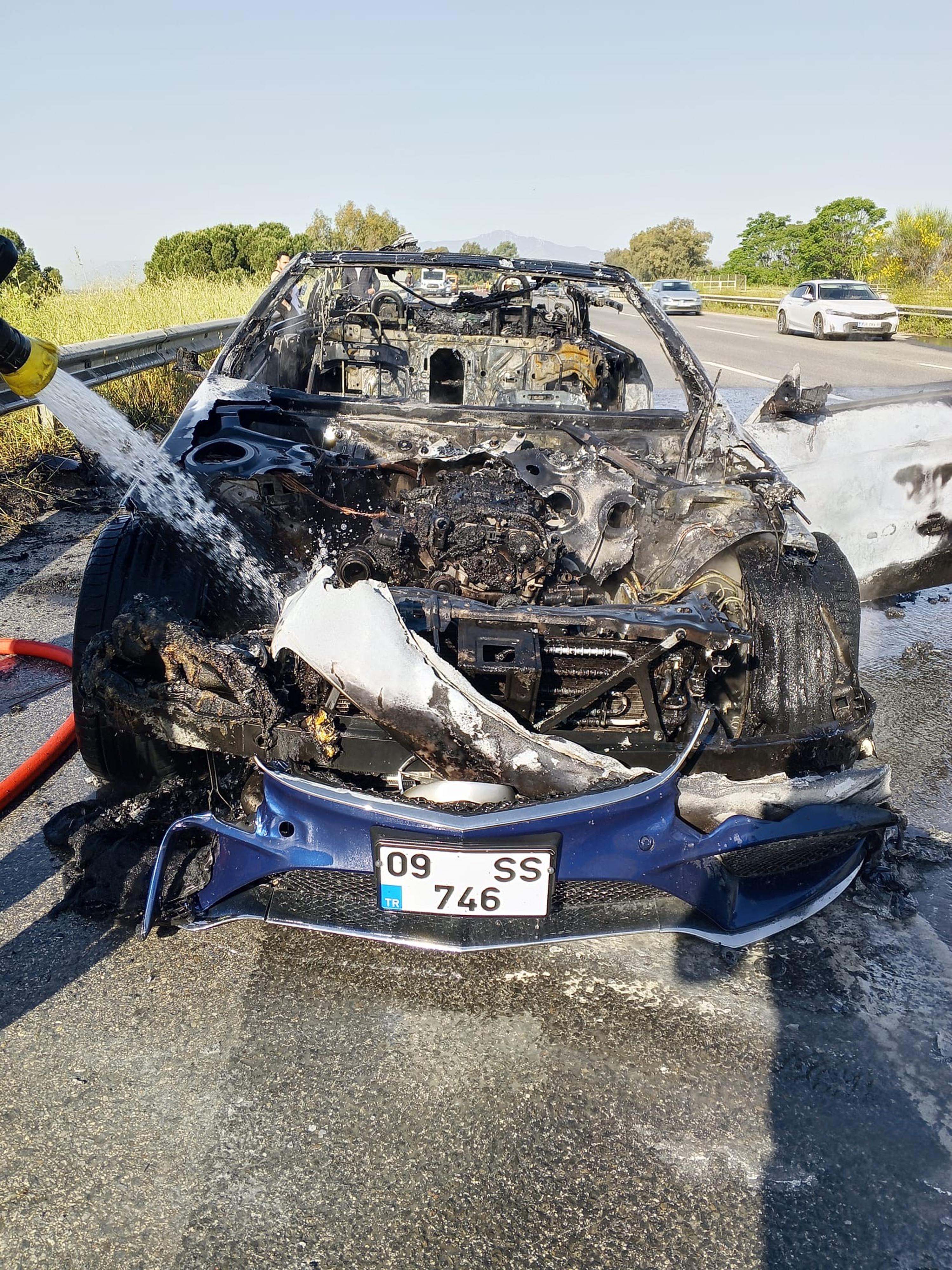 KULLANILAMAYACAK HALE GELDİ!Bölgeye intikal eden itfaiye ekipleri tarafından yapılan müdahaleler sonucunda yangın yarım saat içinde söndürüldü. Otomobil ise kullanılamayacak hale geldi.