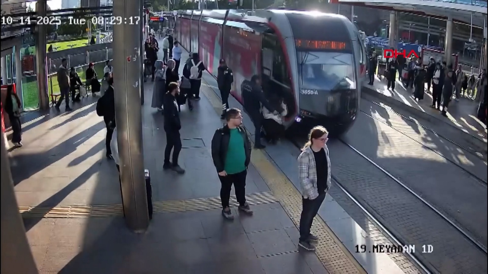 Kayseri’de Cumhuriyet Meydanı tramvay durağında meydana geldi. Kulağında kulaklık bulunan bir kadın yolcu, tramvayı fark etmeden yolun karşısına geçmeye çalıştı. Yolcu, güvenlik görevlisinin müdahalesi sayesinde olası bir kazadan son anda kurtuldu.